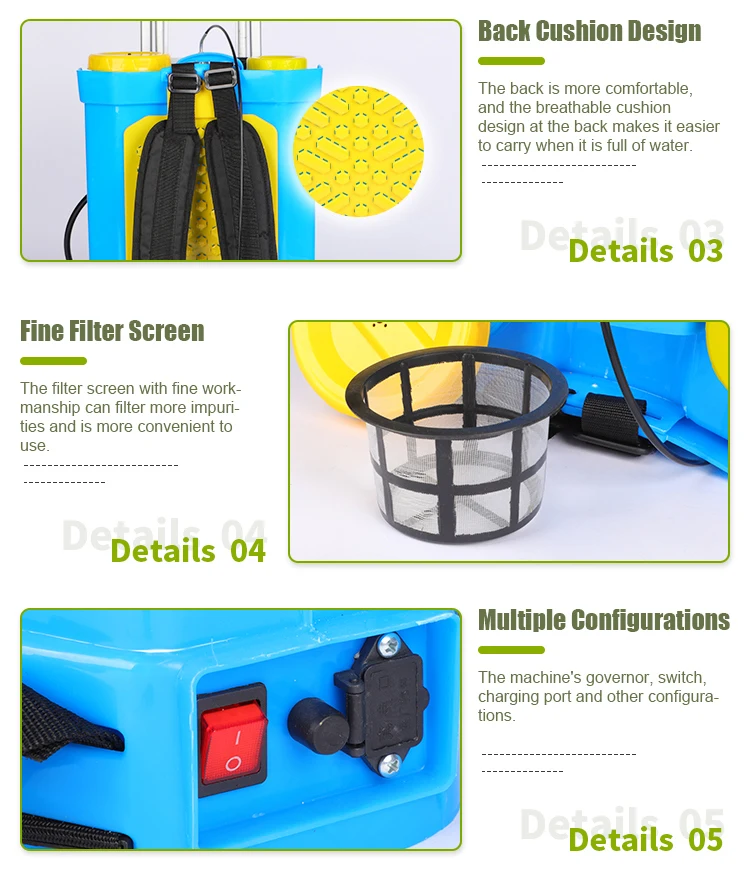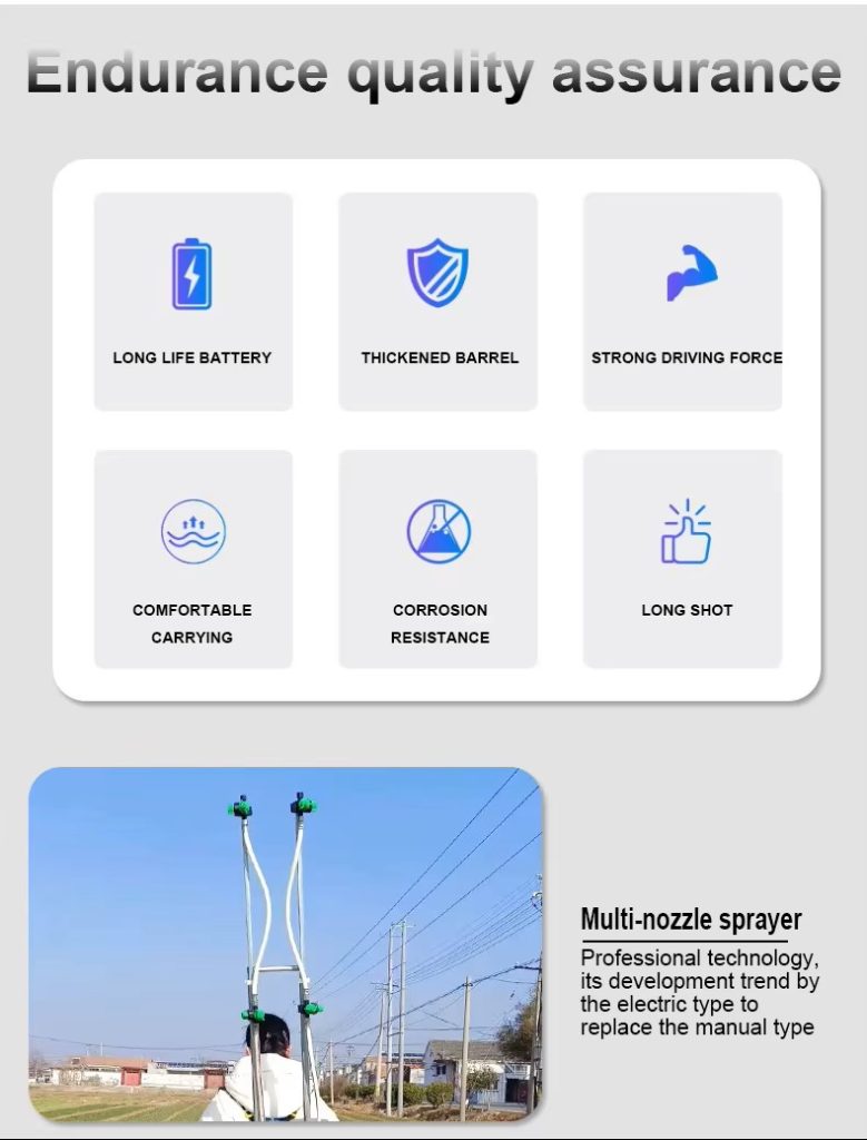 This knapsack Agriculture Battery sprayer is designed for agricultural and garden use, featuring a 20L capacityhigh-pressure functionality, and a durable PE tank. Equipped with a copper nozzle, it ensures efficient pesticide spraying.
